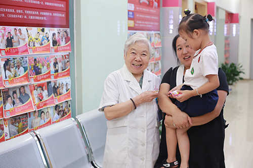 2018年8月25日,时女士和老公领着女儿来南京家和医院(南京新协和医院®)了。长途跋涉四百多公里只为和自己的恩人周锦凤说声谢谢。在周主任的诊室,看着满头银发的周锦凤主任,时女士不禁热泪盈眶。时女士说:“周奶奶啊,才四年不见您怎么头发就全白了。我带着女儿来看您了,您看这就是我的女儿,小宝快叫奶奶……”